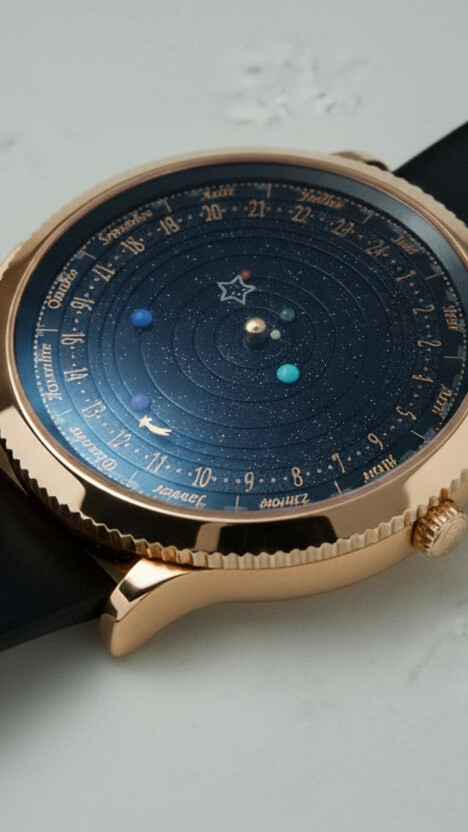 At the heart of the dial, the Sun serves as a quietly brilliant reminder of motion it’s not just decorative but functional, completing a full rotation once per minute. It’s a subtle but mesmerizing cue that the entire watch, like the cosmos it represents, is alive and in motion.
