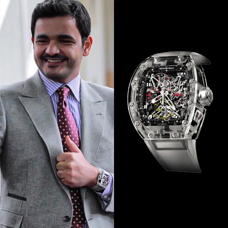 A generation of Arab leaders who combine tradition and international influence is embodied by H.H. Sheikh Khalifa. He is shown sporting the Richard Mille RM 52-03 Tourbillon PSG Edition, which was made in partnership with Paris Saint-Germain and is limited to 10 pieces. Every watch he selects is not just a show of money but also a declaration of good taste and craftsmanship.